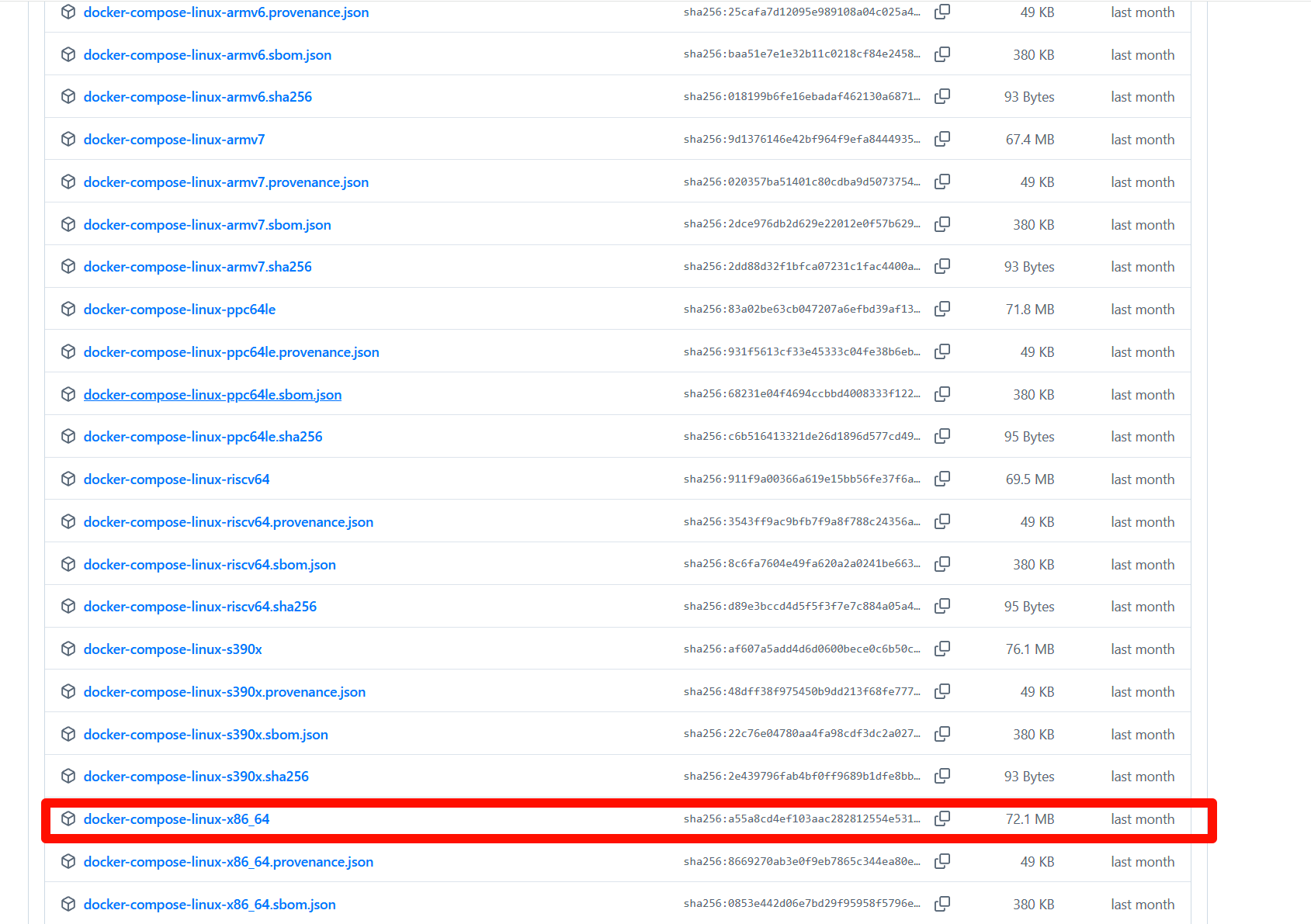 本人这里选择docker-compose-linux-x86_64版本(注意不同linux主机的硬件不一致,根据实际硬件选择二进制文件)